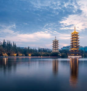 早餐后游览“大自然艺术之宫”芦笛岩(约50分钟),岩洞内有大量奇麓多姿、玲珑剔透的石笋、石乳、石柱、石幔、石花,琳琅满目组成了狮岭朝霞、盘龙宝塔、原始森林等景观,令人目不暇接、如同仙境一般。游览广西综合性公园--七星公园(约1.5小时)栖霞寺、花桥、华夏之光广场、骆驼山、克林顿讲演处等。后游览叠彩山,这里山势俊秀,树木葱茏,环境十分优雅(约1.5小时)。游览“半枕漓江”伏波山(约30分钟),它素以岩奇特、景致清幽、江潭清澈而享有“伏波胜镜”的美誉。中餐后游桂林城微象鼻山(游览约40分钟):因整座山形似一头驻足江边饮水的大象,栩栩如生,引人入胜,故得名象鼻山。这里历来为旅游胜地,旖旎的风光,神奇的形象,动人的传说。