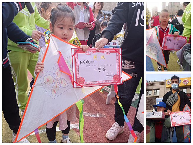 科普讲座结束后,由园长和吉林大药房的志愿者们带领孩子们完成DIY手工制作风筝小游戏,参与家庭均能获得礼品一份。最终评选三个优秀作品,奖励玩具大礼包。每个孩子脸上洋溢着收获与快乐的笑容。