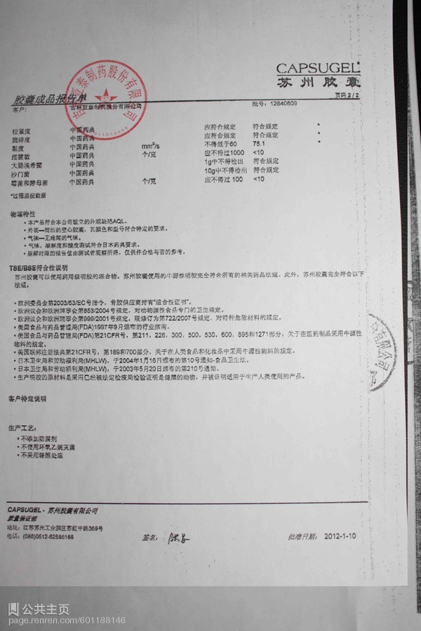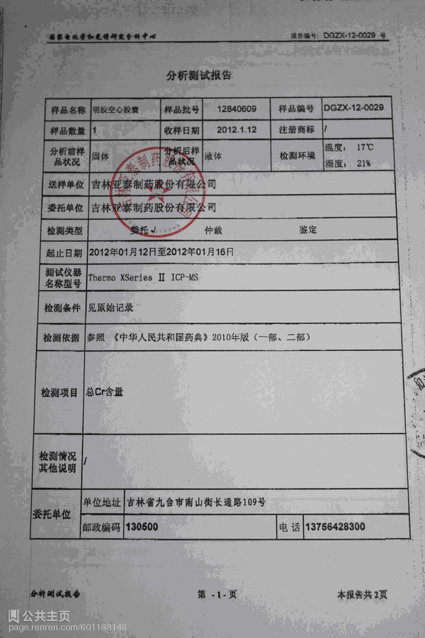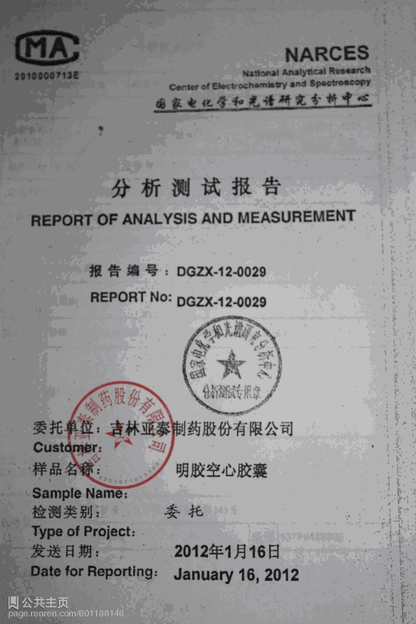 感谢您多年来对国家一类新药参一胶囊的认同及支持! 吉林亚泰制药股份有限公司生产参一胶囊使用的空心胶囊为国内最大空心胶囊生产商中美合资企业苏州胶囊有限公司生产,该公司资质证明齐全,为合格供应商。 自2010年10月《国家药典2010版》颁布实施增加明胶空心胶囊“铬”项目的检测指标至今,我公司共从苏州胶囊有限公司购入参一胶囊使用的明胶空心胶囊3批次,并按《国家药典2010版》标准要求,对每批次空心胶囊均进行了全项检验工作,3批产品全检合格。其中,“铬”项目的检测均委托国家电化学光谱分析中心(中科院应用化学研究所)完成,检测结果分别是: 0.8 mg/kg、0.2 mg/kg、0.86 mg/kg,均远低于国家法定标准的“铬”含量限度2 mg/kg,“铬”检测项全部合格(后附各批次检测合格报告书)。 4月16日国家药监局公布部分企业生产的药品所用空心胶囊“铬”含量超标后,我公司立即对参一胶囊使用的空心胶囊再次进行了自检,检验结果为合格。 我公司严格执行符合国家GMP标准的质量控制体系管理,对生产用原辅料、包装材料均按国家新版GMP要求严格执行入库验收等管理制度,并按相关要求对来货进行验收、取样、留样、检验管理,严把进货质量关,今后也将严格遵照执行,以保护广大消费者的切身利益,保证人民群众用药放心安全有效,维护我企业及产品参一胶囊的良好社会形象。 因此,我公司承诺并保证所供应产品参一胶囊均为质量合格产品,请广大消费者放心使用。 特此声明。 吉林亚泰制药股份有限公司 二0一二年四月十九日 附胶囊分析检测报告: ![]() ![]() ![]() ![]() ![]() |