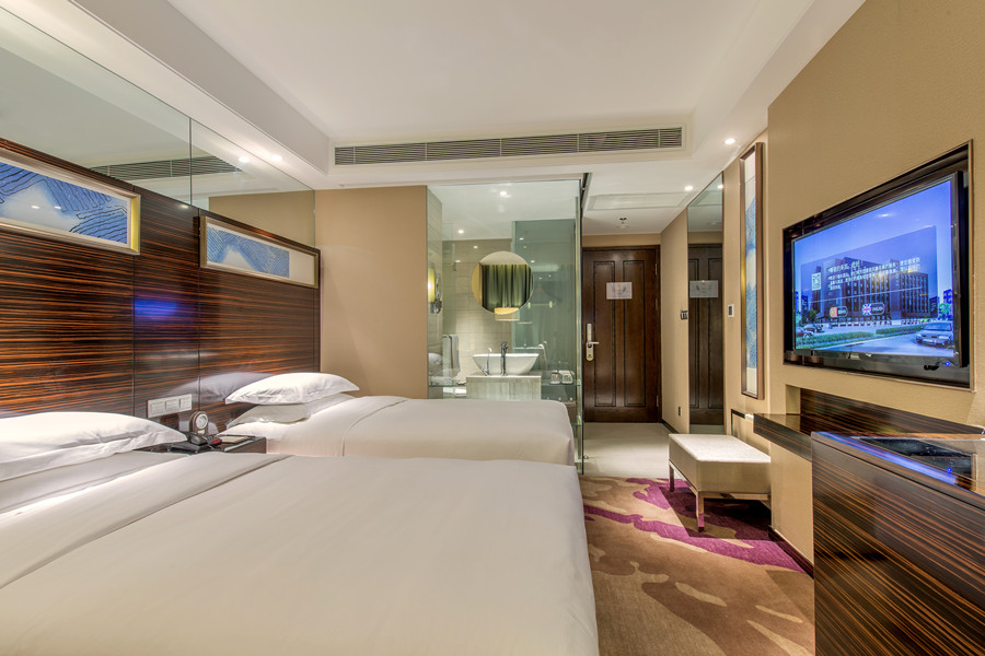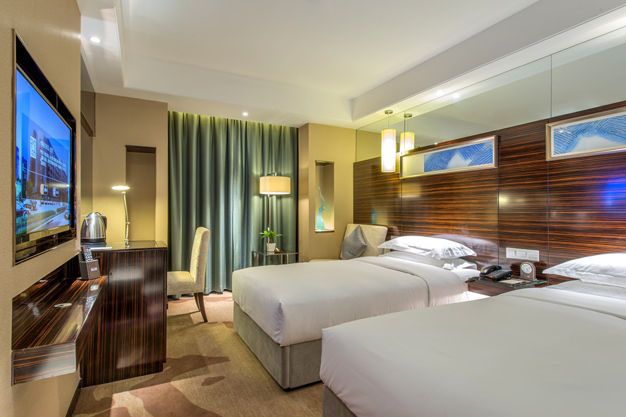 平方米,房内设计现代、雅致,配备中央空调系统、鲜风空气循环系统、金可儿睡眠系统、个性枕头菜单、电视电子账单查询等,是商务出差宾客的首选。