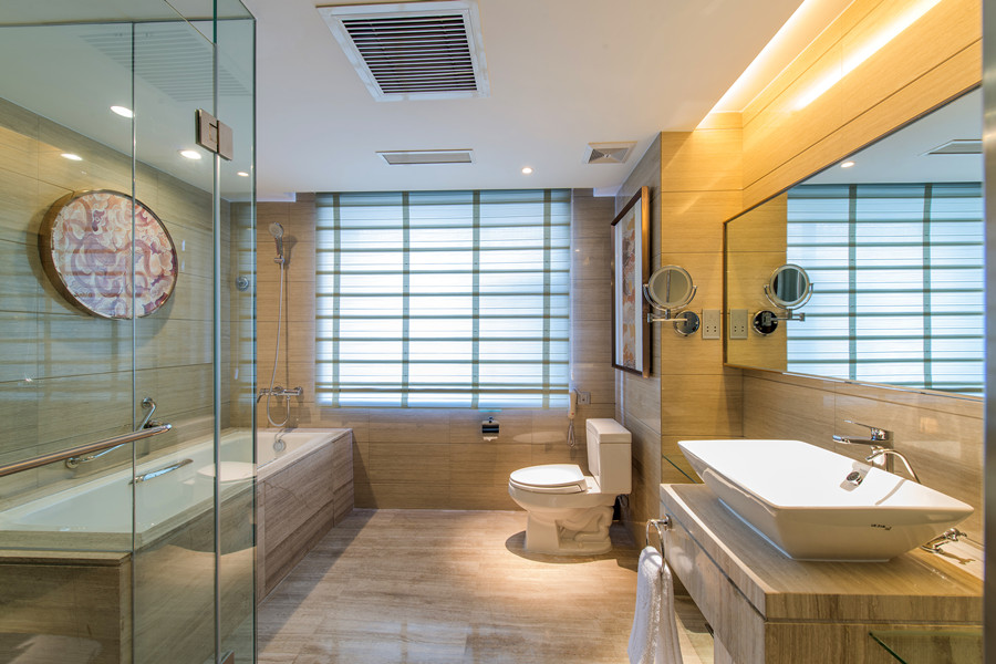 行政套房:包含客厅、卫生间、卧室,房间面积65平方米,配备中央空调系统、鲜风循环系统、电脑门卡系统、直饮水系统、金可儿睡眠系统、无线网络、有线网络接口、24小时不间断插座。房内设计时尚、现代又不失品味、格调,房间内为顾客提供个人保险箱、小冰箱、熨衣板、熨烫机、吹风机、体重秤、足浴盆、瑜伽垫、茶具、浴袍、个性枕头菜单、免费矿泉水、茶叶、咖啡及一次性洗漱用品。 另外饭店还贴心的为顾客提供衣物外洗服务、叫醒服务、大件行李寄存、代收快递等服务。