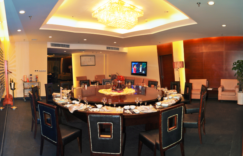 饭店拥有极其完善和现代的宴会、会议设施及多个高级餐厅包房。宴会厅可同时容纳320余人,配有最先进的灯光音响设备,盛大璀璨,尽显气派。饭店餐饮专注精品集餐,致力于绿色、营养、健康相结合的特色餐饮,汇集了各色中华美食,新派吉菜是饭店特色主打菜肴。