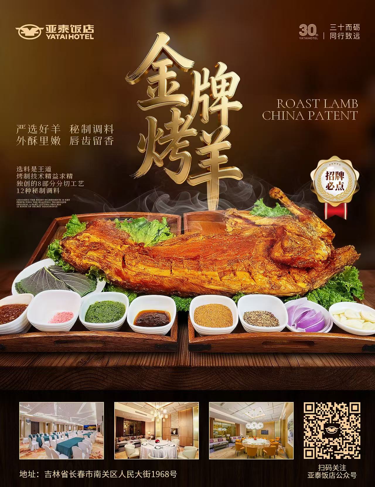亚泰饭店新品上线!招牌「金牌烤羊」甄选小尾寒羊,选料严谨、烤法独特、吃法新颖