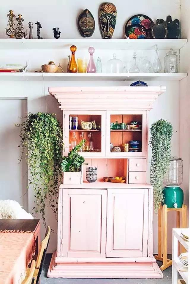 如果是一件固定了架子的地方,则可以放一些多肉累植物或小盆栽,再搭配几本图书和相框,立马文艺起来。