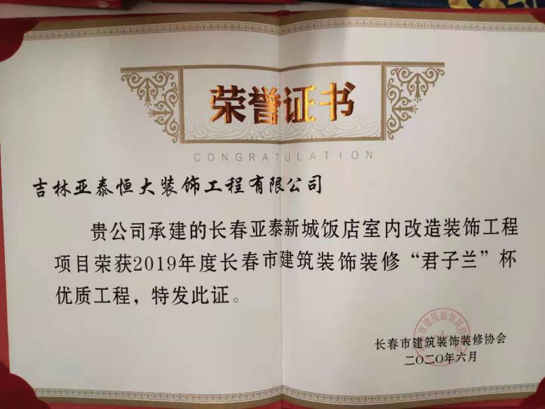 精工匠筑,耀启新章——热烈祝贺亚泰地产建筑公司装饰板块三个工程分别斩获长春市”“君子兰”优质工程奖