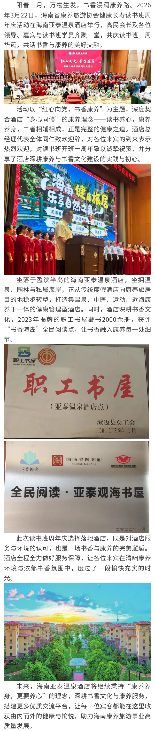 书香伴康养,共赴新征程|海南亚泰温泉酒店圆满承办健康长寿读书班周年庆