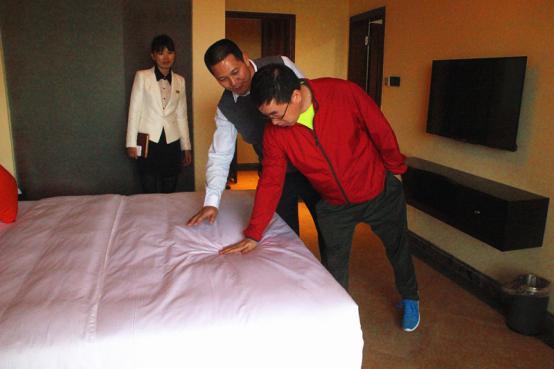 随后刘总参观了生态养生公寓清心苑3类客房,分别是家庭套房、园景房、童趣房,总经理胡慧贤详细地介绍了生态养生公寓各类房型布置构思、物品选材、市场定位、客源对象,以及自身资源优势最大化利用的各项举措。刘总针对养生市场的开发给予指导,建议企业丰富附加产品配套售卖,有效提升产品价值,并指出养生市场未来的可能性,鼓励企业大胆、创新、开拓市场。