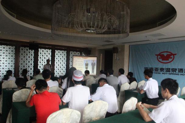 为了让新员工更好的熟悉企业文化,融入酒店工作、生活,同时规范新员工日常工作行为,使其能够高效地完成本职工作,保证高水平的服务质量,海南亚泰温泉酒店于2017年4月7日下午14:00分开展酒店月度新员工入职培训,各部门新员工均参加了本次培训。
