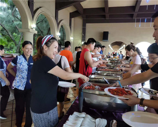 在紧张刺激的比赛过后,孩子与家长们前往海边长廊进行自助晚餐,映着海边落日,用餐在一片和谐分氛围中进行,欢声笑语汇成一道亮丽的风景线。