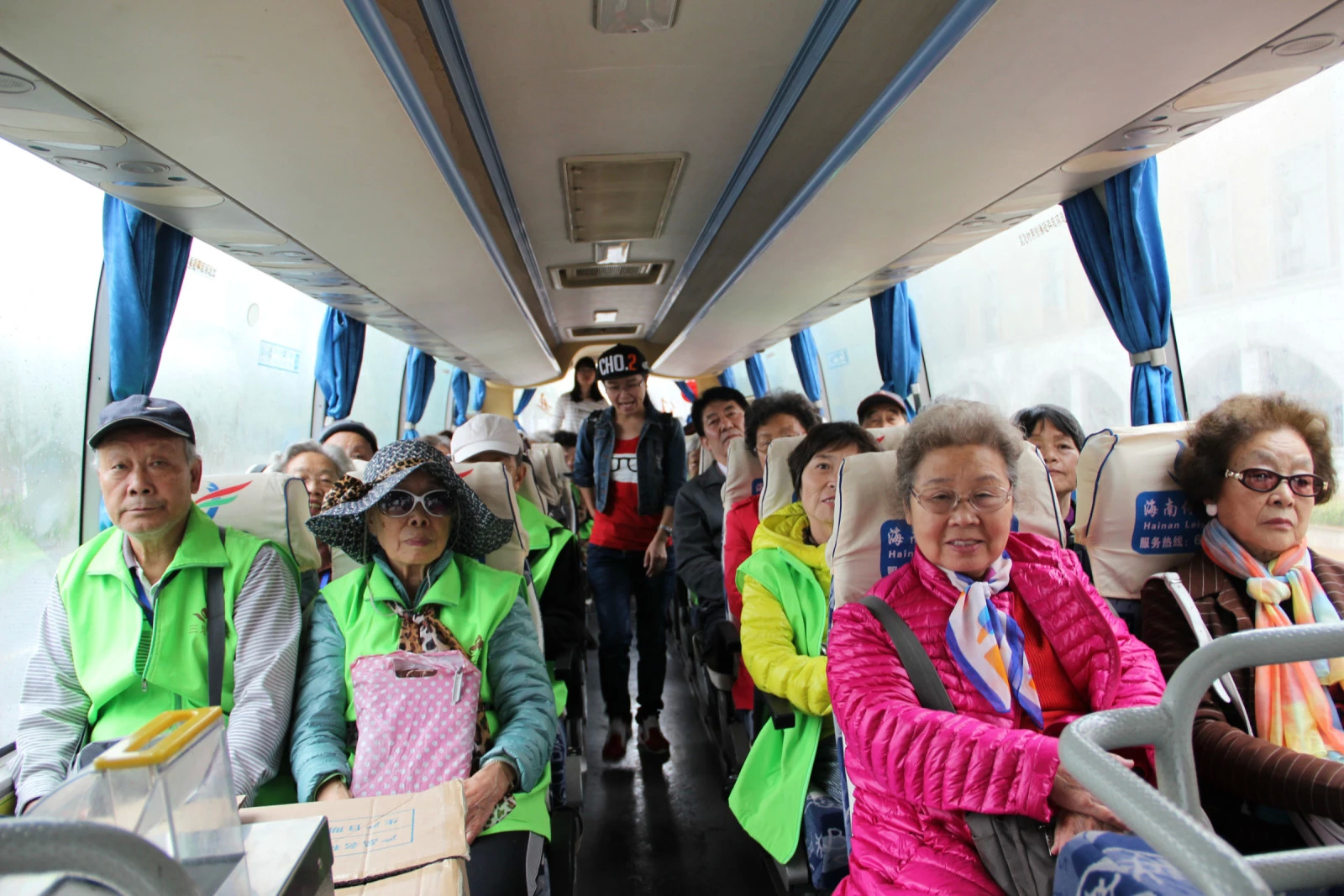 虽说细雨绵绵,却也无法阻挡叔叔阿姨们激动的心情。一路上说说笑笑,小小的车厢洋溢着快乐的气息。
