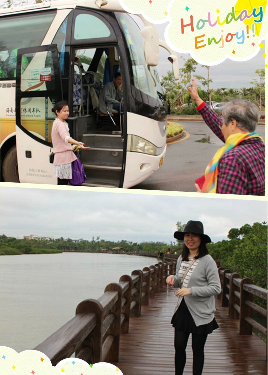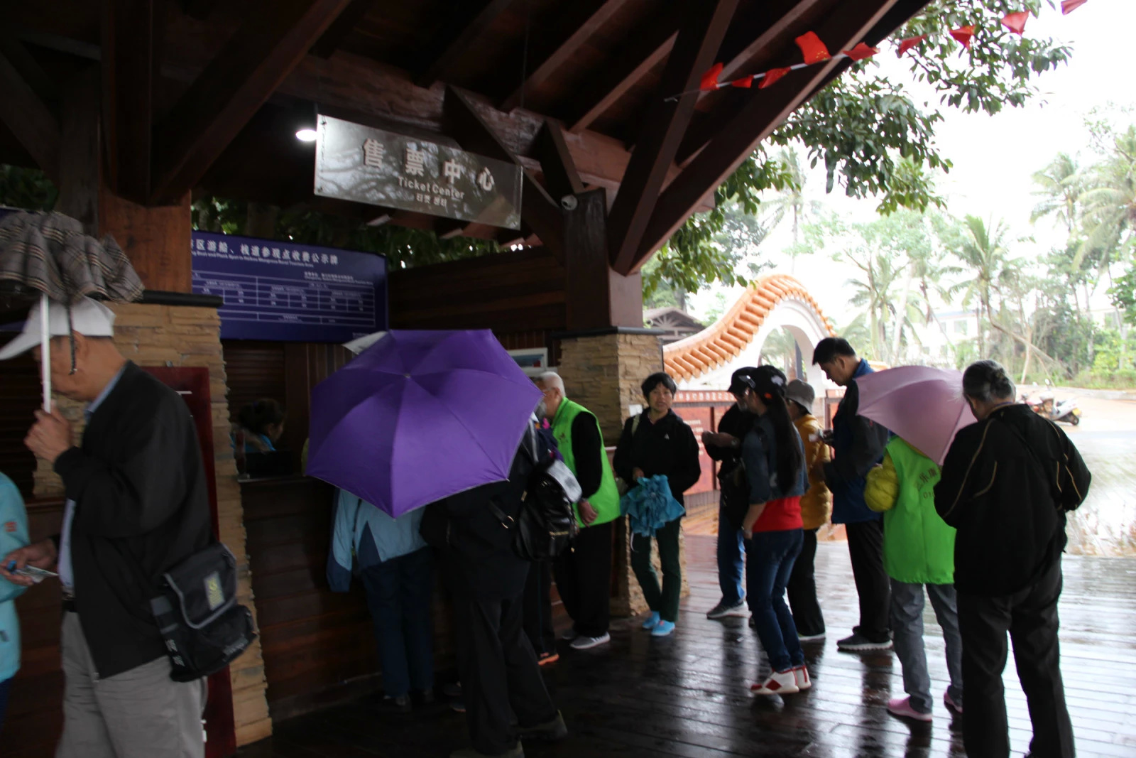 在车厢中说说笑笑中,不知不觉就到了目的地——海口演丰镇东寨港红树林生态自然保护区。现在听我号令(哈哈哈,偷乐中),叔叔阿姨们开始掏腰包买票去玩吧。