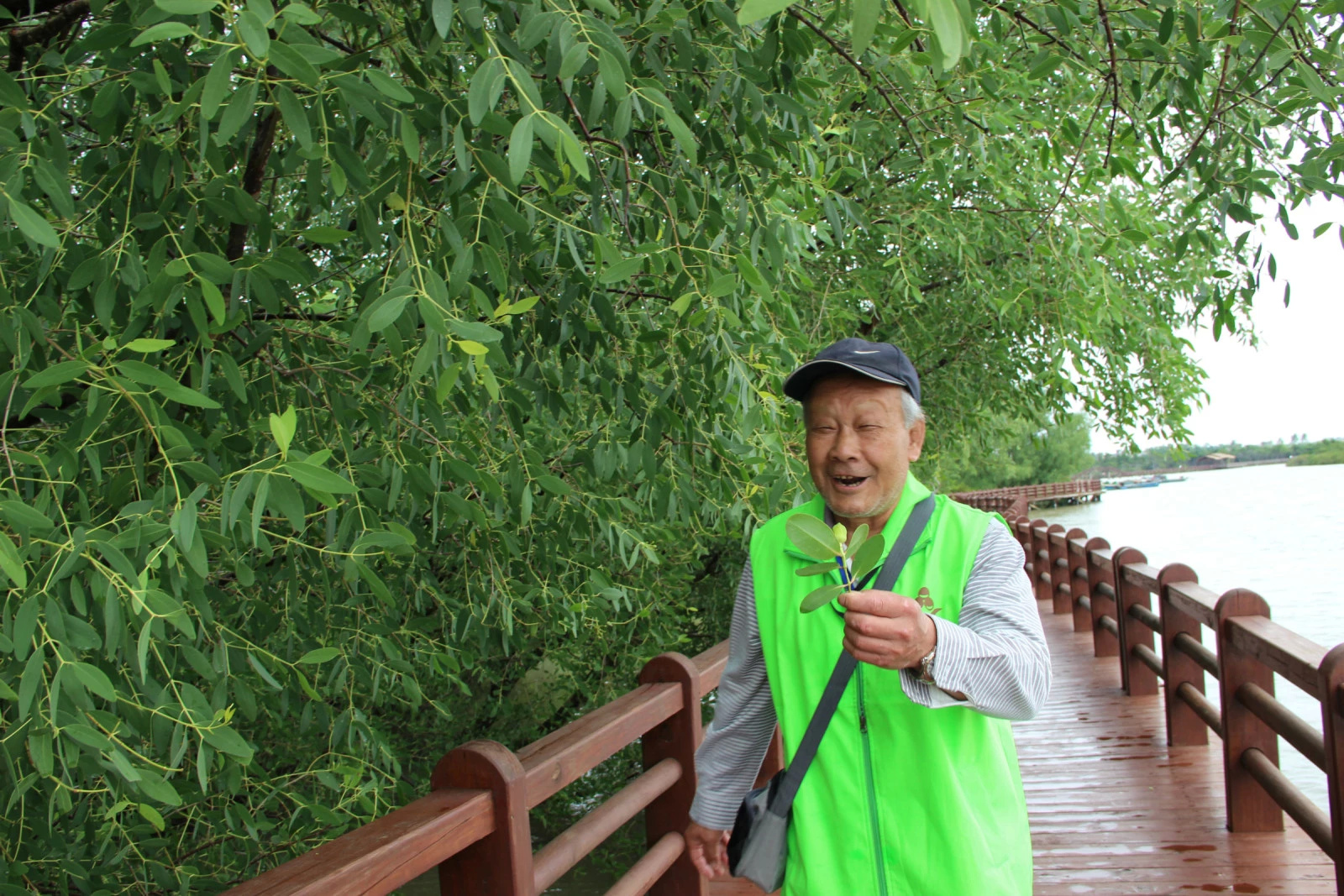 叔叔高兴地要和红树林比比谁更绿,哈哈,神逻辑呀,看着满脸的笑容,就知道,此局比赛叔叔的衣服完胜!