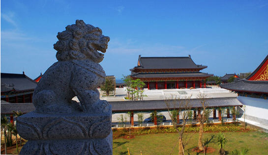 (2)公交车:乘海口市区发往澄迈永庆寺的55路公交车,至“盈滨半岛永庆寺”下车。