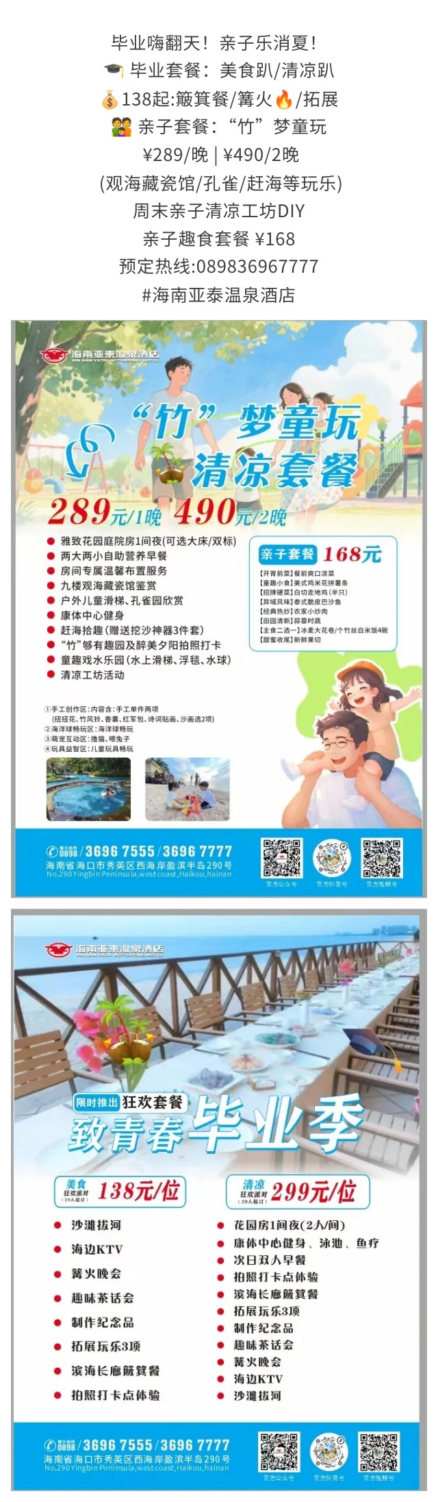 毕业嗨翻天|亲子乐消夏!亚泰酒店双主题套餐:138元起毕业狂欢,289元/晚亲子度假!