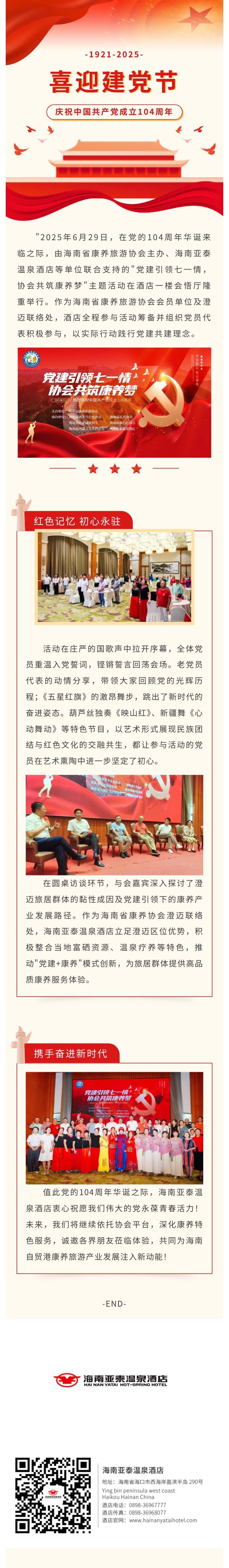 红色传承 康养同行 | 海南亚泰温泉酒店协办建党104周年主题活动圆满举行