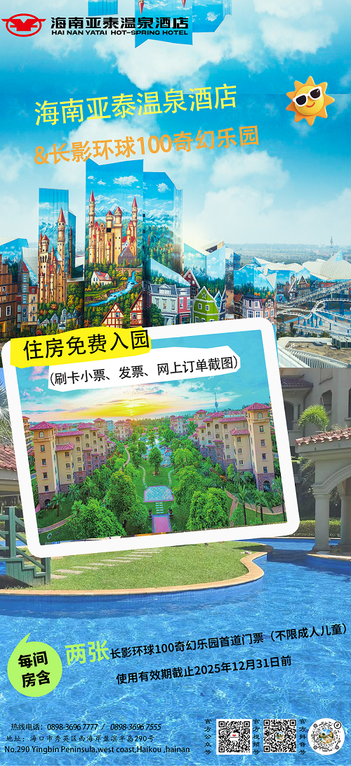 海南亚泰温泉酒店 & 长影环球100奇幻乐园:住店即赠双人门票!