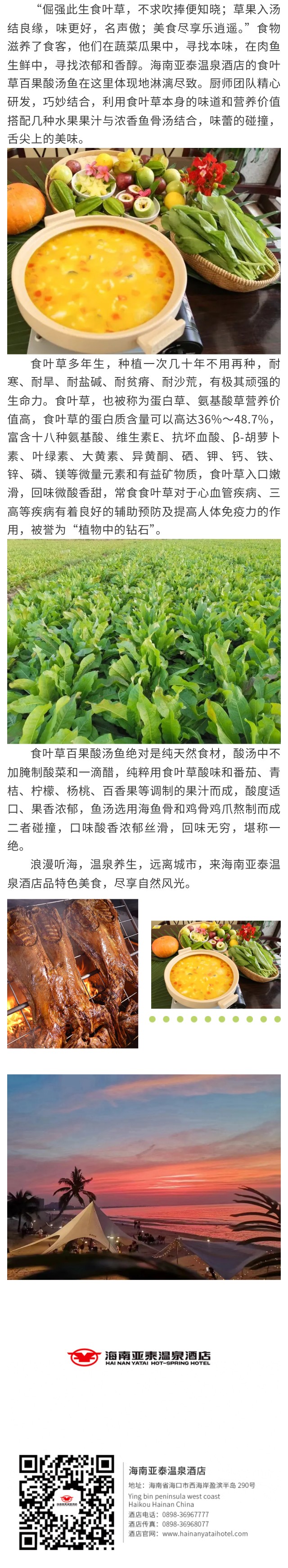 海南亚泰温泉酒店|富含优质蛋白“植物金矿”食叶草百果酸汤鱼~
