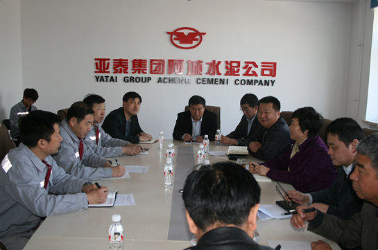 会上,公司总经理宋辉向杨区长一行汇报了阿城公司当前的生产经营情况、需要政府帮助协调解决的问题,并重点就冀东水泥在阿城区投资建厂给亚泰阿城公司及地区行业的发展带来的不利影响,以及冀东水泥建厂后将带来的恶性竞争对区域经济及政府税收的影响进行了详细的分析。宋总还就集团建材产业在阿城区打造矿山开采、水泥熟料生产、骨料、商品混凝土、预制构件等住宅产业链的发展进行了介绍,请政府从推动区域经济发展角度扶持亚泰企业不断发展壮大。宋总表示,企业未来将承担城市垃圾无害化回收处理工作,同时打造干净整洁、环境优美的花园式企业。