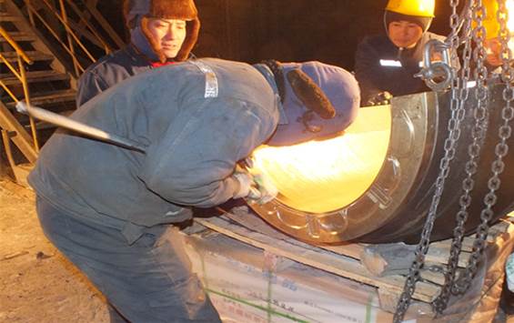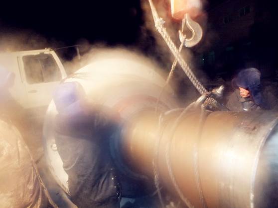 4、阿城公司秋季检修2013年11月29日晚深夜,维修工人冒着零下33度的严寒,为了保证检修进度维仍在忘我的工作。(摄影:姚希彬)