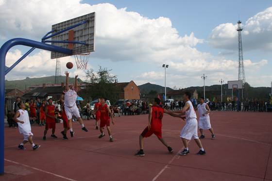 9、这是我们阿城公司参加松峰山镇篮球友谊赛。通过参赛进一步加强公司与当地政府、友邻单位之间的沟通,增进了友谊,(摄影:王鹏)