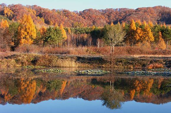 5、这是我们阿城公司厂区内,一个池塘旁秋天时的景色,很美吧。(摄影:姚希彬)