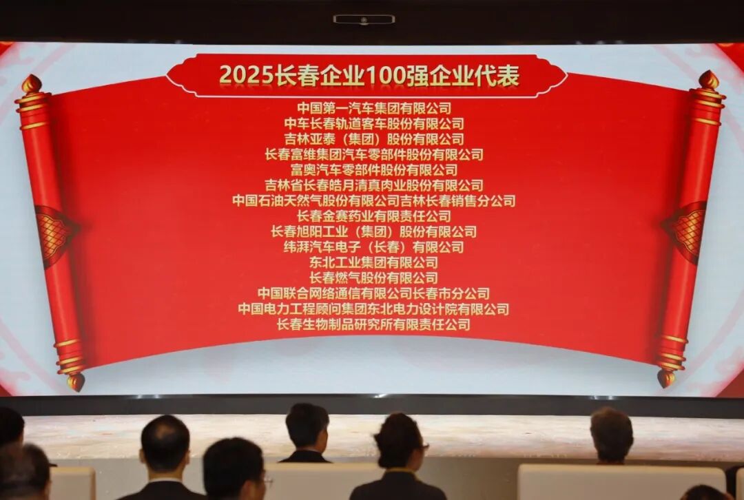 2025年11月15日上午,集团公司副董事长、总裁刘树森,副总裁于来富受邀参加“2025 长春企业 100 强、民营企业 100 强”发布会,市委、市政府、市人大、市政协、市委政法委、市委金融办、市发改委、省市企联及长春市多位著名企业家出席活动,刘树森总裁作为颁奖嘉宾在前排就座。
