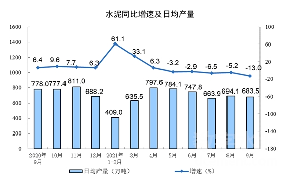 2021年1-9月份,全国累计水泥产量17.78亿吨,同比增长5.3%。9月份,全国单月水泥产量2.05亿吨,同比下降13%。