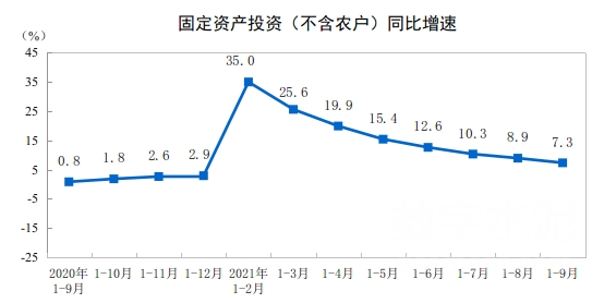 2021年1-9月份,全国固定资产投资(不含农户)397827亿元,同比增长7.3%;比2019年1-9月份增长7.7%,两年平均增长3.8%。其中,民间固定资产投资227473亿元,同比增长9.8%。从环比看,9月份固定资产投资(不含农户)增长0.17%。