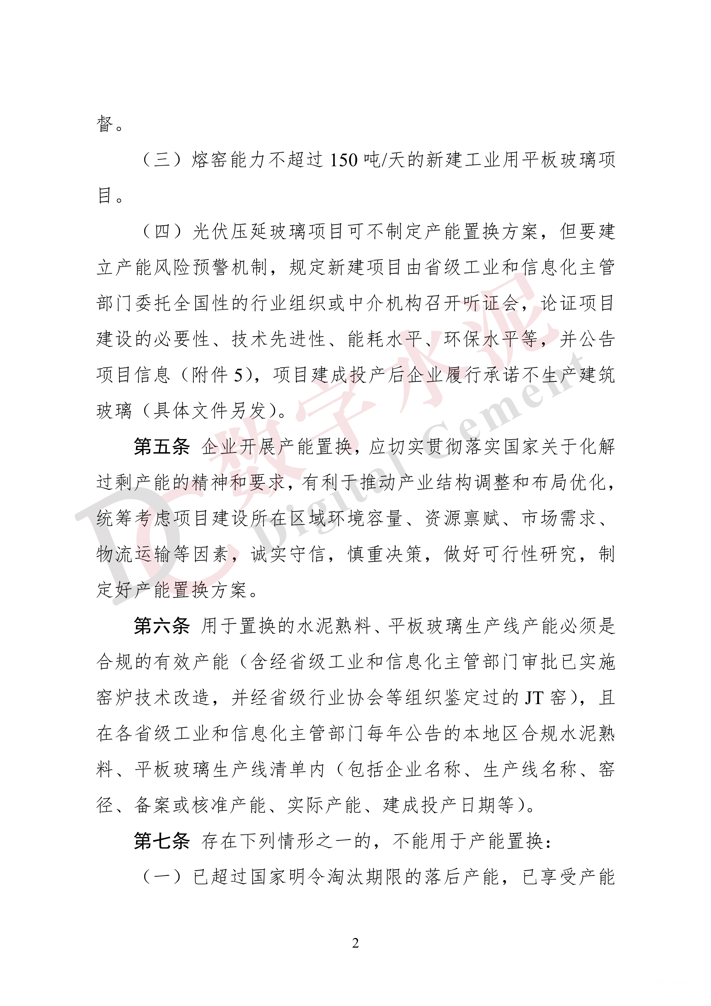 用于置换的水泥熟料、平板玻璃生产线产能必须是合规的有效产能(含经省级工业和信息化主管部门审批已实施窑炉技术改造,并经省级行业协会等组织鉴定过的JT窑),且各地省级工业和信息化主管部门需在每年3月31日前更新并公告本地区截止上年底的水泥熟料、平板玻璃生产线清单(包括企业名称、生产线名称、窑径、备案或核准产能、实际产能、建成投产日期等),指标须在清单内。同时,存在办法第七条规定的情形之一的,不能用于产能置换: