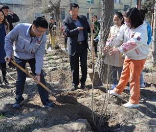 仪式结束,候总和大家一起,来到水泥社区果园,齐心合力清理果园卫生,为果树修整新枝,剪掉死枝,移除枯树,并补栽新树56棵,通过大家的共同努力,力争使居民生活环境更加美好,为社区增添一片绿色,提升社区居民的幸福指数。