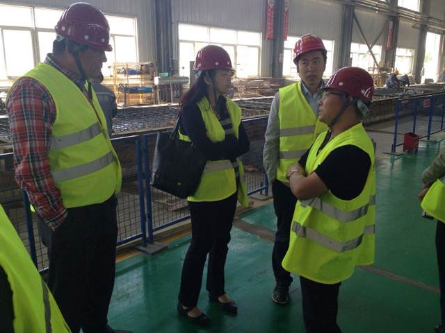在参观考察企业PC构件生产线和产品时,听取了企业总经理贾旭平和副总经理杜常岭关于企业规模、PC构件生产工艺、质量控制、产品应用及产能等方面的介绍,大连市建委副主任李东晔对企业领先的技术水平、标准化的生产线及高品质的产品给予了非常高的评价,并对企业在住宅工业化的雄厚实力表示震撼,对装配式施工体系的节能环保、施工周期短等优势给予赞扬。