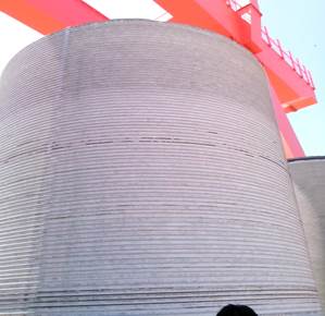 2、钢卷经过螺旋缠绕并通过焊接形成高5M,直径3米的钢桶(如图所示)。