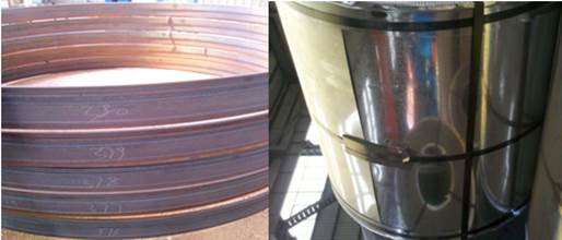 1、钢桶所使用材料为本钢集团生产的承插口型钢和1.5mm钢板卷(如图所示)。