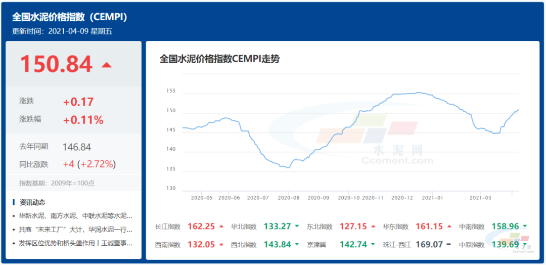 上海:近日上海地区天气好转,市场需求恢复较好,加之周边江苏地区水泥价格上调带动。4月8日起上海地区主要厂家通知上调M32.5及P.C42.5级水泥价格20元/吨。