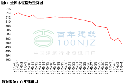 概述:本周全国料线运转率72.22%,较上周下降7.27%,全国平均熟料库容比为63.95%,较上周上升1.54%,全国水泥价格涨跌互现,截止6月4日,百年建筑网水泥价格指数为499.66点,较上周508.13环比下跌1.67%。