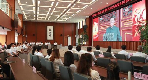 亚泰集团组织观看纪念中国人民抗日战争暨世界反法西斯战争胜利80周年大会