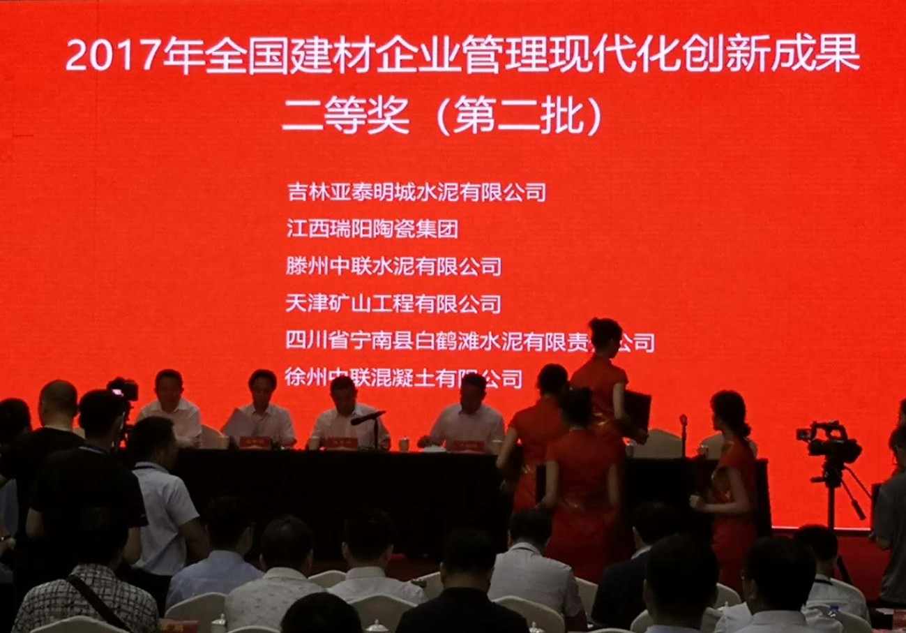 会议根据中国企业联合会、国务院国资委企业改革局、工业和信息化部产业政策司和中小企业局《关于组织审定第二十四届全国企业管理现代化创新成果的通知》(国管审【2017】02 号)文件的精神,中国建筑材料企业管理协会于 2017年12月-2018年3月开展了“2017 年度中国建材企业管理现代化创新成果和管理创新突出贡献人物”审定活动,历时四个月,经初审、终审。吉林亚泰明城水泥有限公司申报的《创新精细化开采过程控制,打造资源节约型矿山》成果荣获2017 年度中国建材企业管理现代化创新成果二等奖、党委书记、总经理张振良同志荣获“2017 年度中国建材企业管理创新突出贡献人物”称号。
