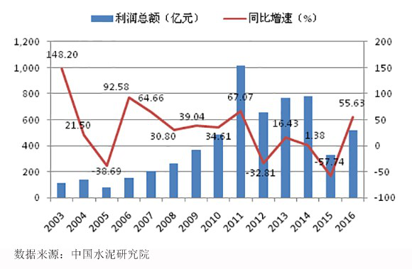 根据国家统计局统计数据,2016年我国水泥行业实现收入8764亿元,实现利润518亿元。去年10月份,水泥行业利润总额才达到300亿元,而今年上半年就将超过去年三季度水平,按照此形势,今年的行业利润将远远高于去年。如果年底能够实现1000亿元利润,这意味着利润将同比增长93%,回升到2011年的历史高位。