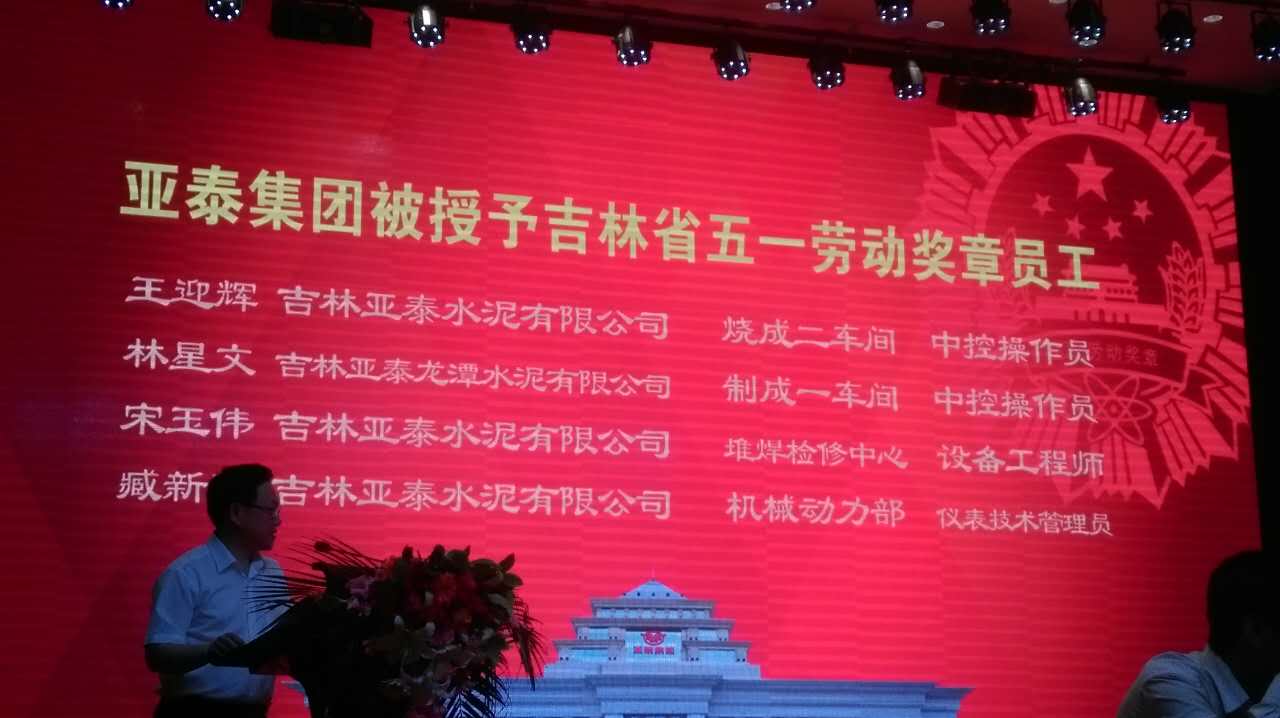 比赛开始前,吉林省人社厅、长春市总工会及亚泰集团领导,为此前亚泰集团承办的水泥行业首席技师大赛中荣获“吉林省五一劳动奖章”荣誉称号的四名优秀技能人才颁发了省五一劳动奖章和证书。本公司中控操作员林星文同志获此殊荣。