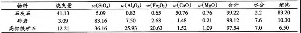 由于采用石灰石、砂岩与高铝铁矿石三组份进
