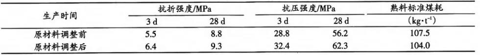 原材料更换后,出窑熟料3d抗压强度达到32.4MPa、28d抗压强度达到62.3MPa,