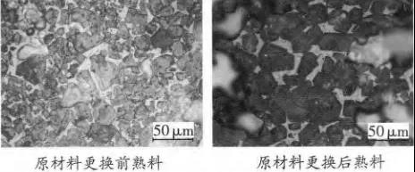 图1 原材料更换前后熟料岩相分析