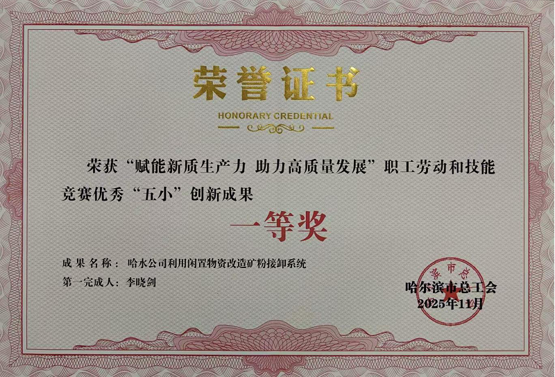 经过基层工会推荐,公司共上报6项创新成果。活动组委会于2025年12月下发了《哈尔滨市总工会关于发布2025年“赋能新质生产力助力高质量发展”职工劳动和技能竞赛优胜单位、引领性项目、工人先锋号、 优秀“五小”创新成果和“安全吹哨人”的通报》。公司共有4个项目获奖,