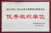 亚泰集团哈尔滨水泥有限公司荣获哈尔滨市厂务公开民主管理知识竞赛活动优秀组织单位称号