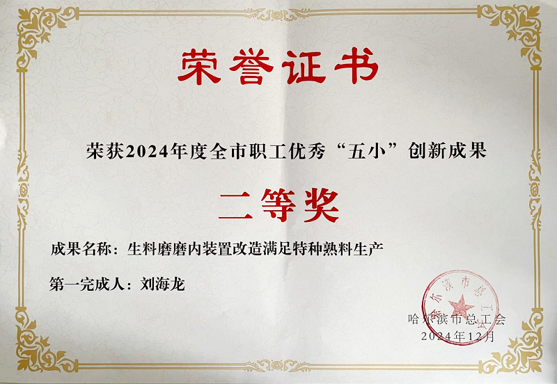 为大力激发公司广大员工建功立业的积极性和主动性,充分发挥一线员工的主力军作用,打造一支懂技术、勇钻研、会创新的产业技术人才队伍,亚泰集团哈尔滨水泥有限公司积极组织员工参加哈尔滨市总工会组织开展的“建功十四五 奋进新征程 振兴哈尔滨”主题劳动和技能竞赛活动,并荣获“五小”创新成果多个奖项。
