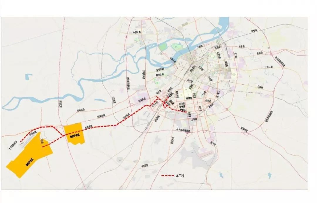 机场第二通道迎宾路高架项目,建设地址位于哈尔滨市南岗区、道里区。