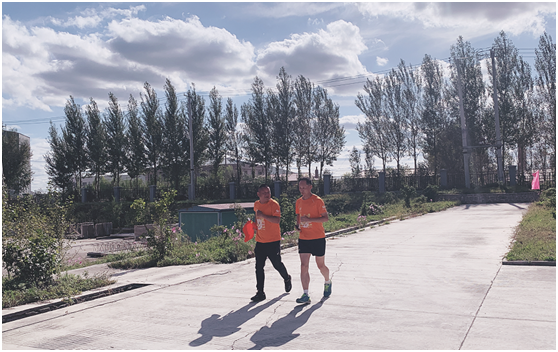 贾总为暂时落后的团队选手加油鼓劲、陪伴奔跑。