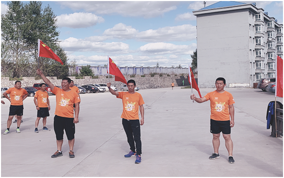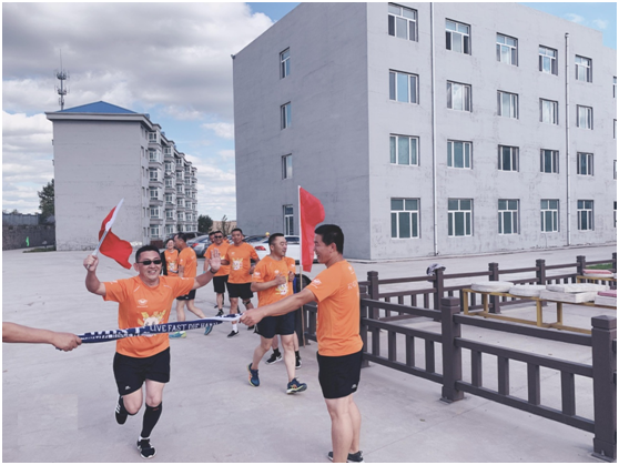 向前辈致敬、做拼搏的亚泰人——由构件车间、阿城站、道外站一线员工组成的5×1000米接力小组用传递国旗的形式、用努力拼搏的精神向革命前辈的团结与奉献致敬。构件车间通过团队共同努力最终获得了冠军。