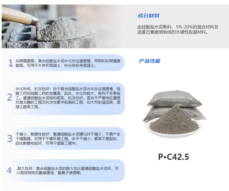 亚泰建材商城提供了多型号、多品类的水泥商品供广大消费者选择,其中PO42.5以其“凝固时间短、生产工艺强、市场认可度高”的优势,在各种民生建设中广泛应用。