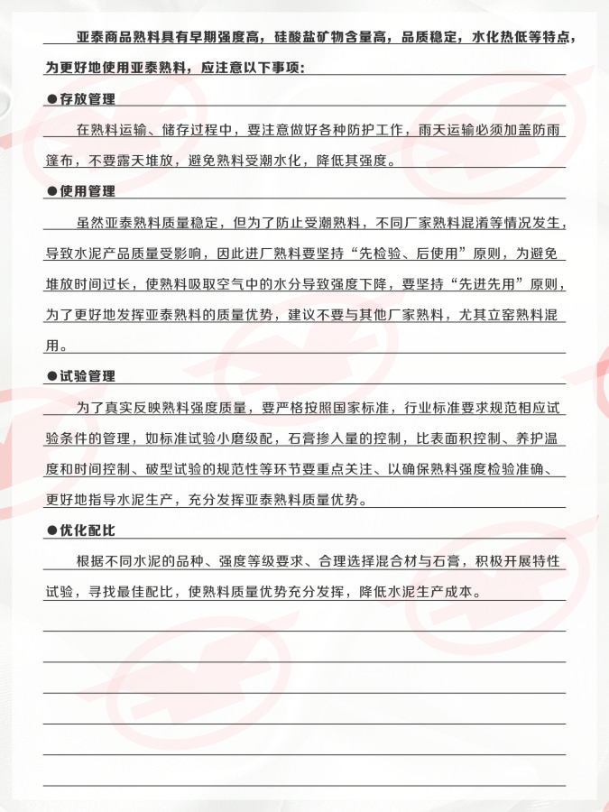 亚泰熟料使用注意事项
